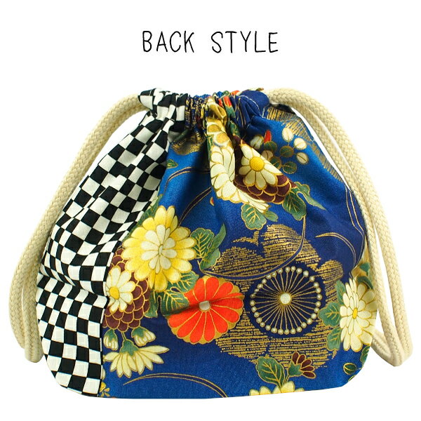 【送料無料】菊×市松ブラック 巾着(中) namioto 波音 日本製 日本土産 おみやげ 和柄 お弁当箱 給食 小物入れ 化粧ポーチ 和風 手作り ハンドメイド 浴衣 和装 和雑貨 かわいい 巾着袋 夏祭り 祭り 軽い 紐 お祝い プレゼント 和装小物 オシャレ