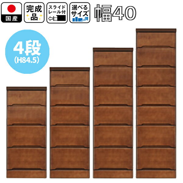 幅40 4段 クライン すき間チェスト ランドリーチェスト サニタリーラック 隙間収納 木製 日本製 完成品