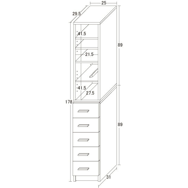 隙間チェスト 25cm 隙間収納 25cm 引き出し 完成品 4段チェスト