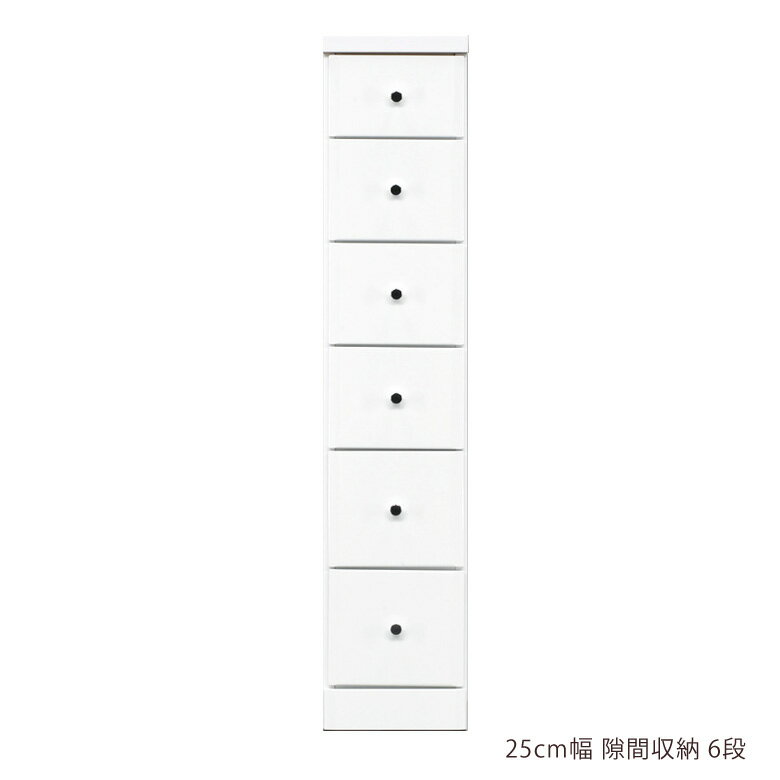 スリムチェスト チェスト 隙間収納 ハイチェスト 隙間家具 スリム コンパクト 幅25cm 6段 引き出し収納 引き出し 引出し リビングチェスト リビング収納 木製 収納 白 白家具 ホワイト エナメル スライドレール 整理ダンス 小物収納
