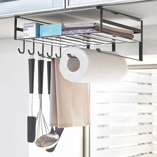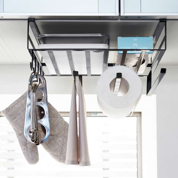 ●よく使うキッチンペーパー、布巾、調理道具、ラップ類なども一括収納!●ラック下の隙間を利用してポリ袋やティッシュ箱からそのまま取り出せます。