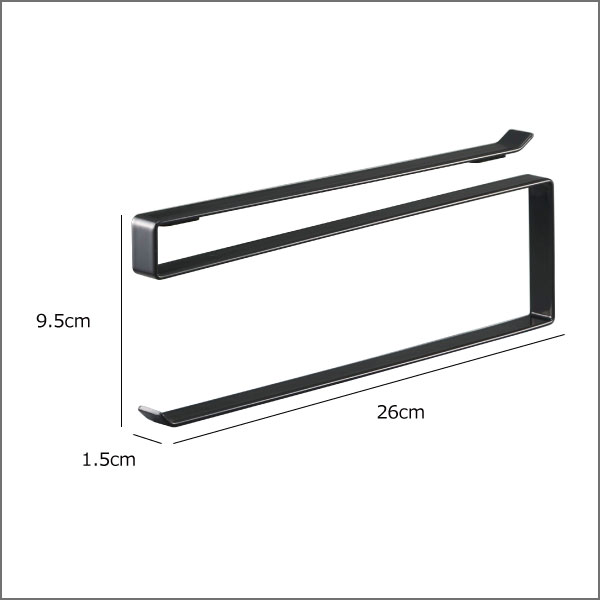 商品詳細 ■サイズ:幅1.5cm×奥行き26cm×高さ9.5cm ■素材:本体:スチール(粉体塗装) ■対応サイズ:高さ24cmまでの一般的なキッチンロールペーパー スタッフコメント 山崎実業の人気シリーズ「tower」の戸棚下キッチンペーパーホルダーです。